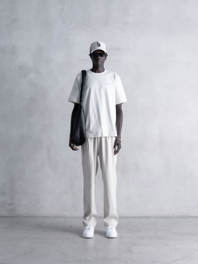 Изготовленная из мягкого и дышащего хлопка, футболка обеспечивает максимальный комфорт в течение всего дня. Ее расслабленный крой позволяет свободно двигаться, не стесняя движений, что делает ее идеальным выбором для прогулок по городу или встреч с друзьями. Цвет Dust White добавляет образу свежести и универсальности, легко сочетаясь с другими элементами гардероба.